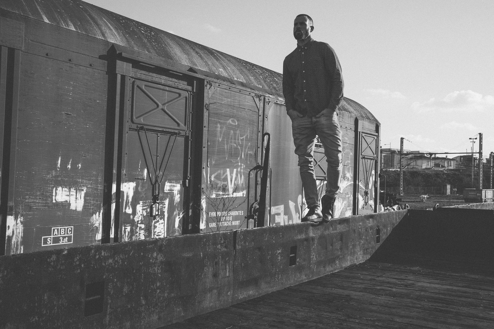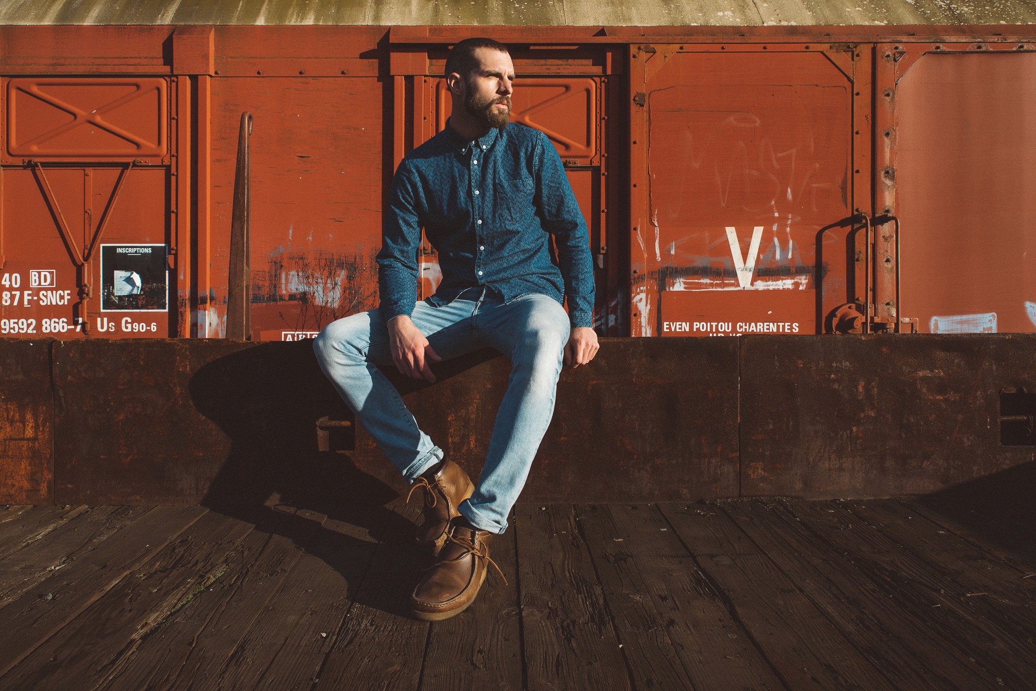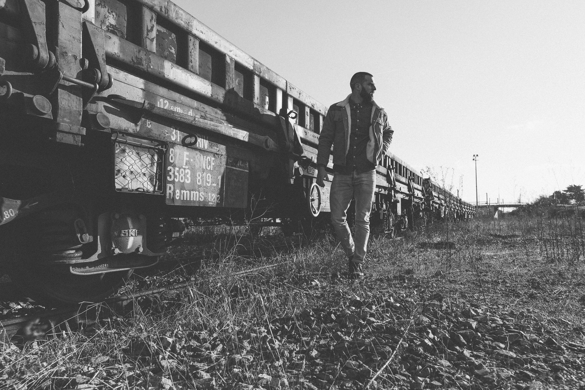 Shot in La Rochelle, around abandoned train cars. Planned shoot with natural light and minimal direction.